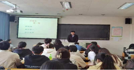 古耀杰老师作为第九次读书活动的领读老师,带领师生共同研读了《资本论》第一卷第三篇“相对剩余价值的生产”部分内容,从相对剩余价值内涵、相对剩余价值产生条件以及相对剩余价值与超额剩余价值之间的关系等问题进行了详细的解读。