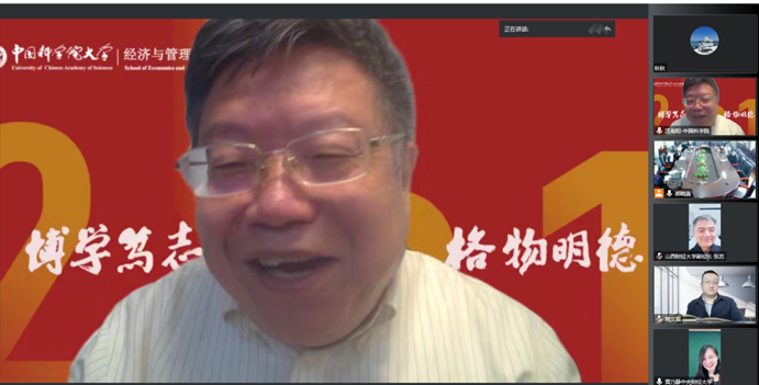 在两位老师报告结束之后,应张苏校长邀请,汪寿阳教授对两位青年学者的文章进行了简要点评。汪寿阳教授对黄乃静副教授的论文给予了积极的评价,并表示两人在研究中存在一些共通之处,指出了文章可能改进的方向、给出了相应的发表建议,并希望以后有机会可以进行更加深刻的交流。对荆文君副教授的研究,汪寿阳教授给予了肯定,同时也对该研究问题发表了自己的观点,指出平台跨界的动机,可能在于企业对完善商业生态系统的需求与资源优势。
